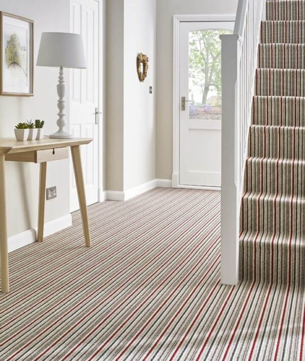 One of the key features of the Kingsmead Kaleidoscope carpet is its choice of two stylish designs: plain and striped. The plain design is perfect for creating a clean, elegant and timeless look throughout the home, while the striped option adds character, movement and a more decorative finish, especially on stairs, landings and hallways. This flexibility makes Kaleidoscope a versatile flooring choice for both traditional and contemporary interiors.