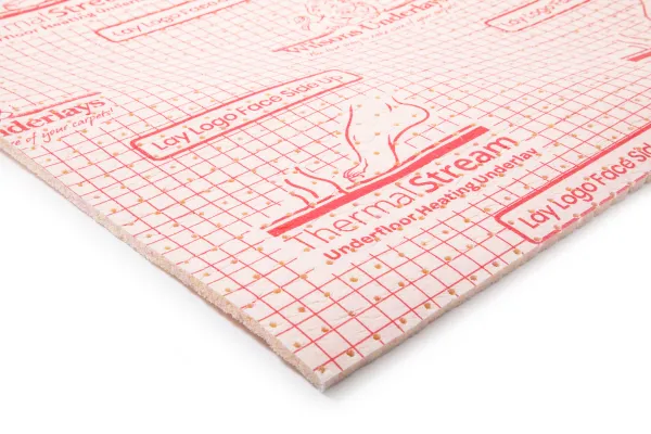 The Wilsons ThermalStream Underlay is luxury graded and suitable to be installed over underfloor heating thanks to it’s pre applied holes which allow quick heat transfer.